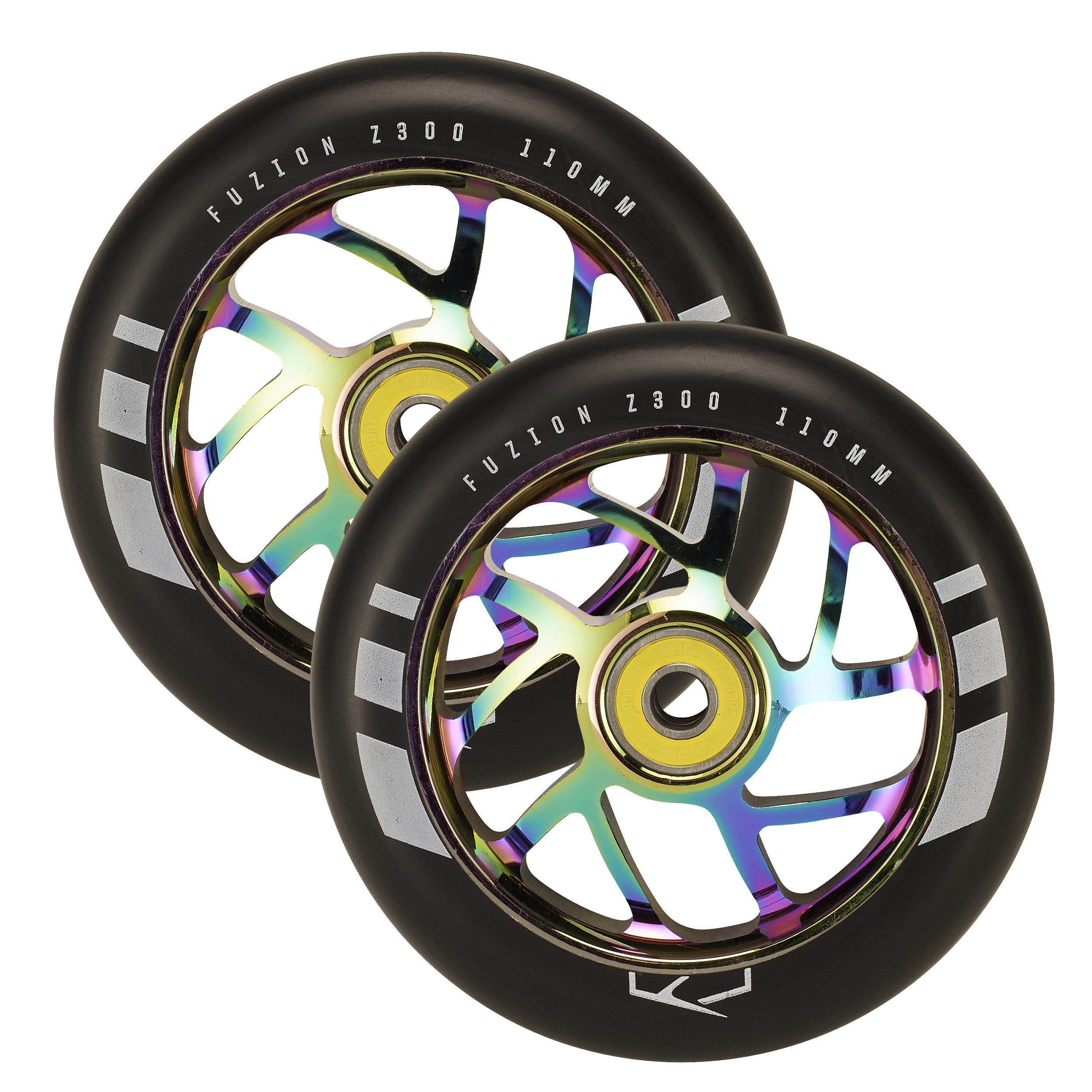 La plupart des roues auront une dimension de 100mm ou 110mm. La taille choisie par le rider est une préférence personnelle. Les avantages à choisir une taille de roue plus grande est que la roue tourne plus vite et plus doucement. Important : vous devez choisir la bonne taille de roue pour votre fourche.
