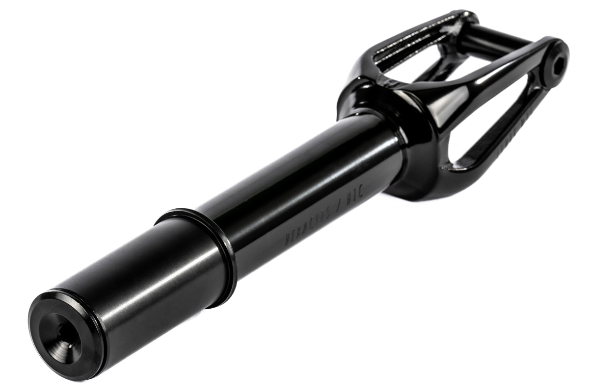 La fourche relie votre guidon, votre plateau et votre roue avant. Le système de compression est nécessaire pour que la fourche se fixe fermement au guidon. La plupart des trottinettes haut de gamme utilisent une fourche sans filetage pour assurer une résistance et des performances maximales.
